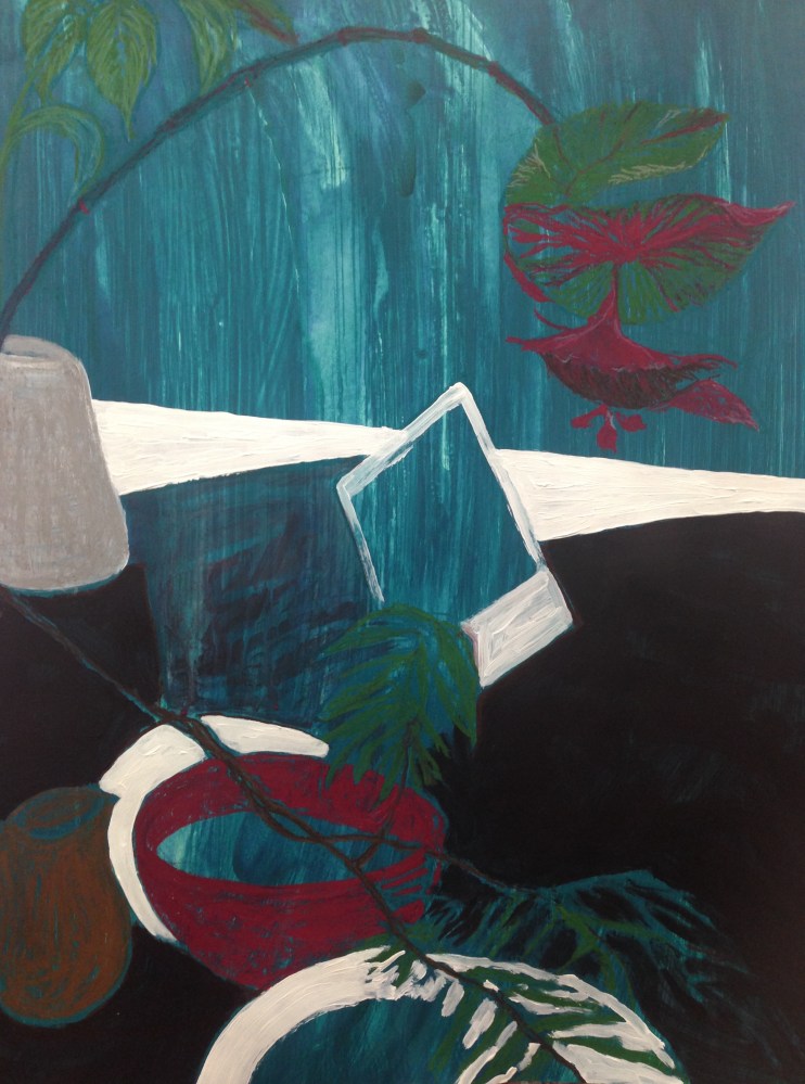 I recently took part in a two-day painting course entitled ‘Glimpses’, at Leith School of Art, led by tutor Eleanor White. The premis for the course was the idea of momentary glimpses of things seen – either momentary in time or in space. So a momentary glimpse in time might be a certain way light falls or an expression on someone’s face. A momentary glimpse in space might be a keek of something which catches your interest, such as a view between buildings or flashes of colour on different objects which dance together.