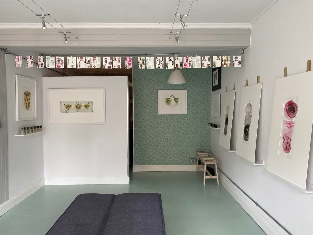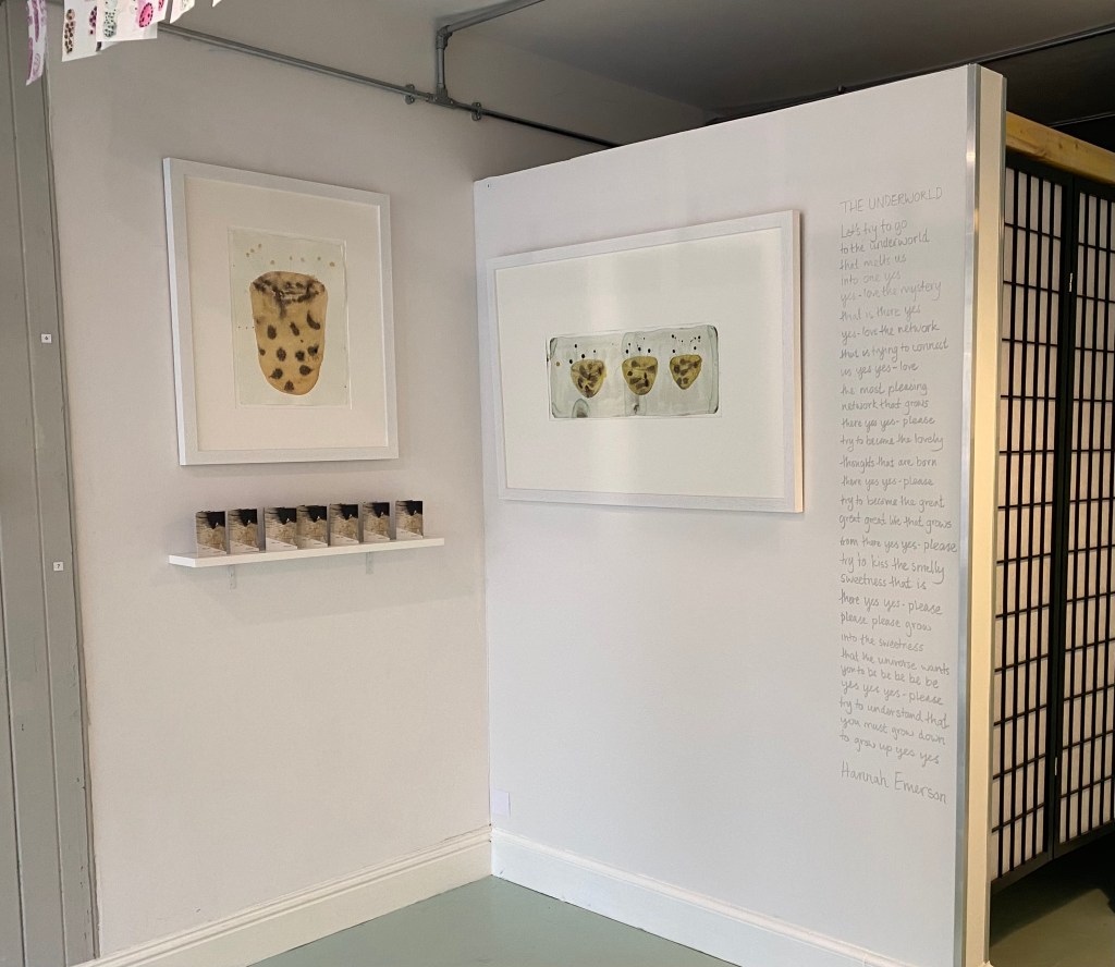 The work focused on bodies and vessels, explorations of the singular/individual and the universal/diverse. They are explorations of the neurodivergent, and neurodiverse, experiences of interiority and interconnectedness with the more-than-human world – they float alone or in groups, are intertwined with each other or with their surrounding environment. Their creation includes inks made from plants foraged in marginal urban areas – pieces of land which are ex-industrial, liminal, in danger of development at any time – and from plants considered weeds and shrubs growing independently in nooks and crevices, not sanctioned or acceptable but habitually tidied away, cleared.